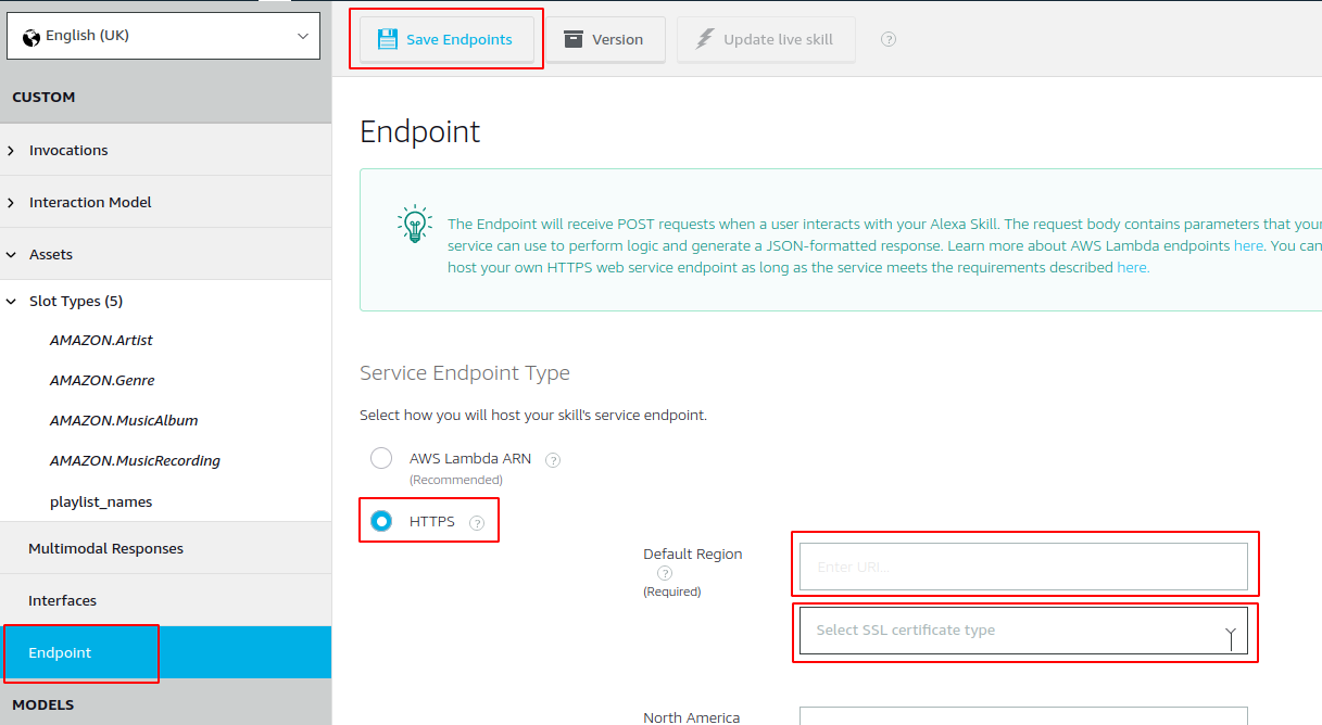 The locale setting is extremely important, if the skill locale and the locale set on your Echo device do not match the skill will not work. In addition there are no error messages generated making the issue quite difficult to troubleshoot. The locale on your Echo device can be set via the Alexa Android app. Please do check the locale setting if you have trouble setting up the skill as the Alexa Skill Builder will default to your local locale, but Echo devices are set to the US locale by default. Checking this first will save you a few hours of troubleshooting!